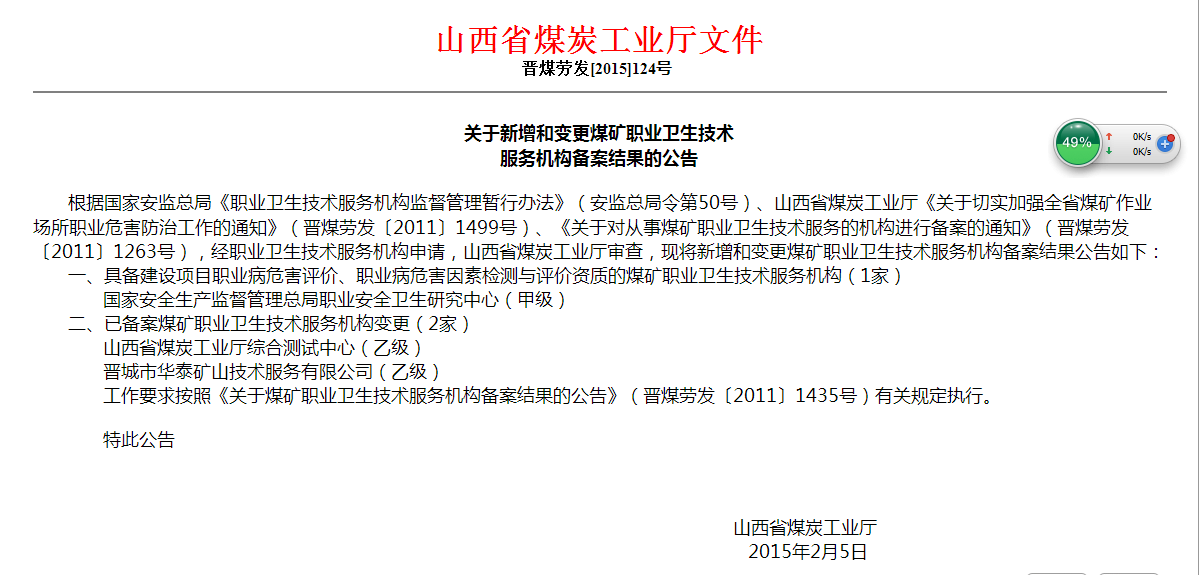 山西晉煤集團沁水胡底煤業有限公司 職業病 09-15
